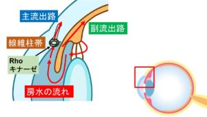 この薬は、Rhoキナーゼという酵素を阻害することによって、房水の出口である線維柱帯の細胞をゆるめ、房水がスムーズに流れるようにします。房水の流出抵抗そのものを下げるため、眼圧を直接的かつ安定的に下げることができます。