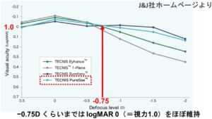 (参考:ビビティや単焦点が1.0の視力を維持できるのは約 −0.5D 程度まで)